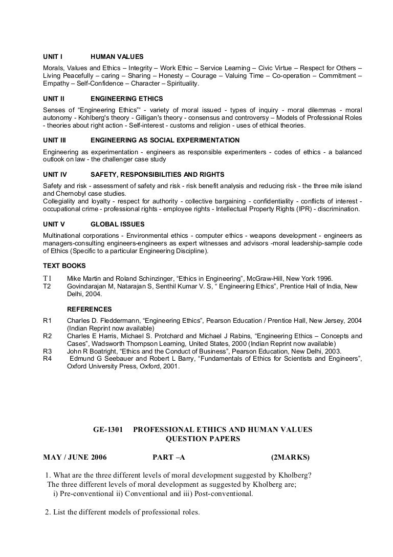 Professional Ethics In Engineering Lecture Notes Study Material And Important Questions Answers Autonomy Experiment
