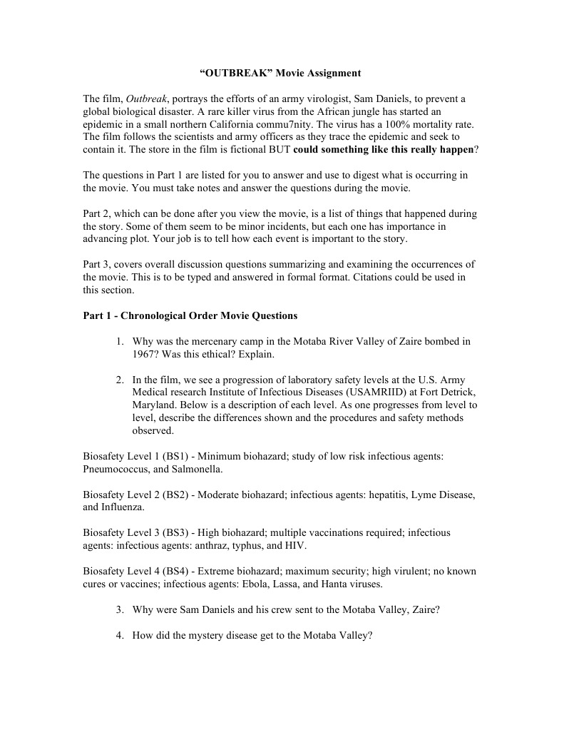 Outbreak Movie Questions Infection Medical Humanities