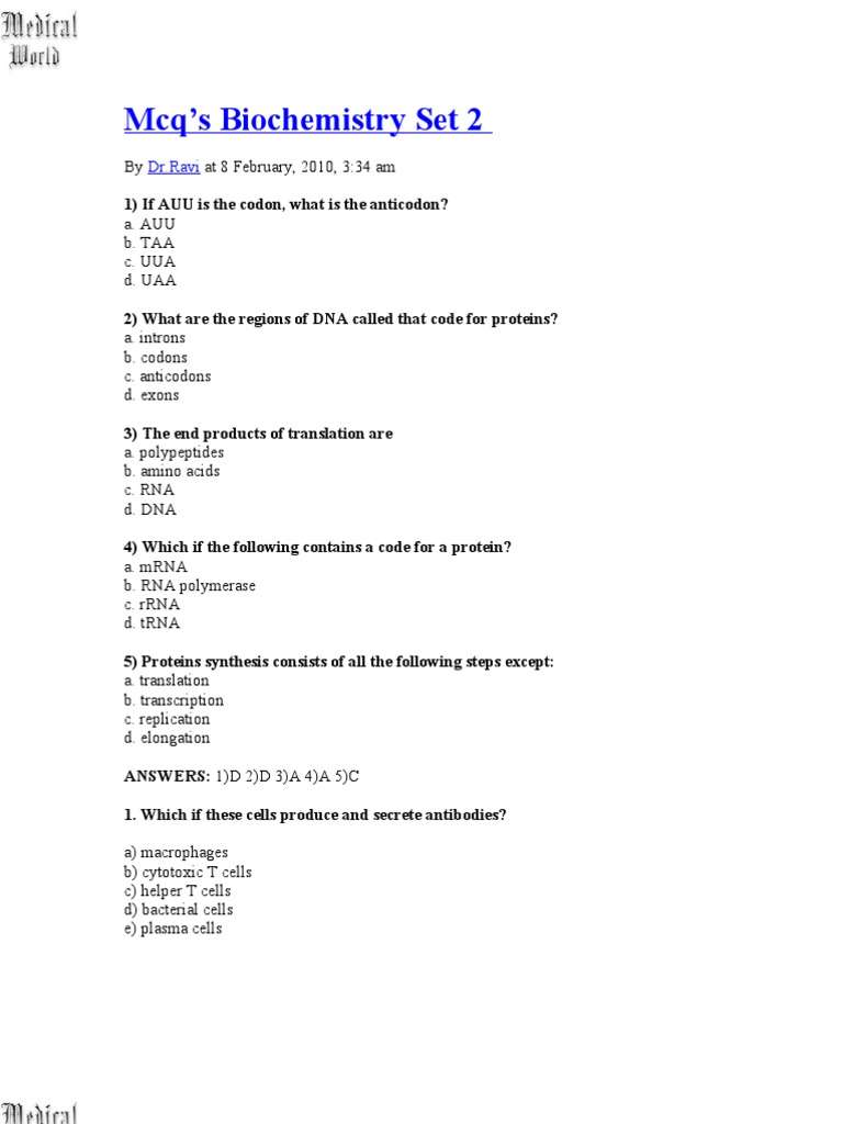 Mcqs Related To Biochemistry Signal Transduction Cell Signaling